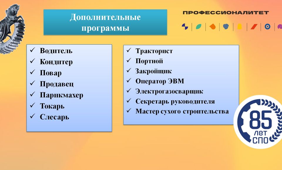 В составе кластера «Профессионалитет» мы даем те знания, которые реально работают. Современные мастерские, опытные наставники и программы, разработанные вместе с индустриальными партнерами. Мы не просто учим варить металл — мы учим им управлять и вдохновляться.