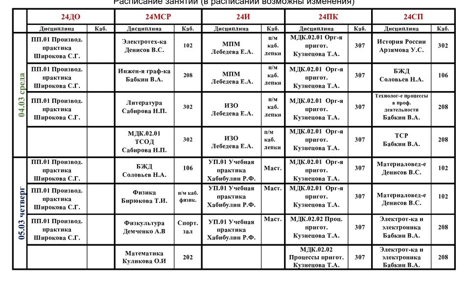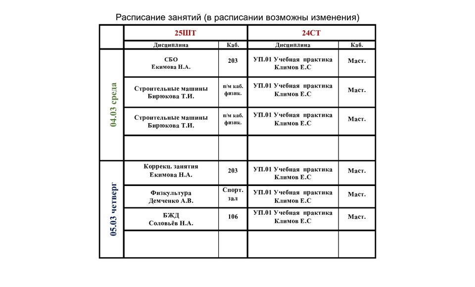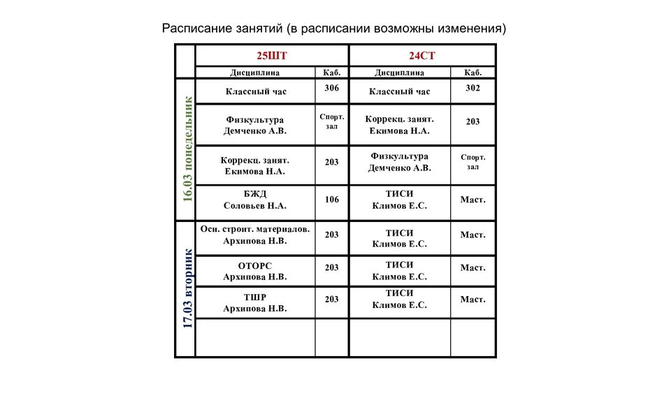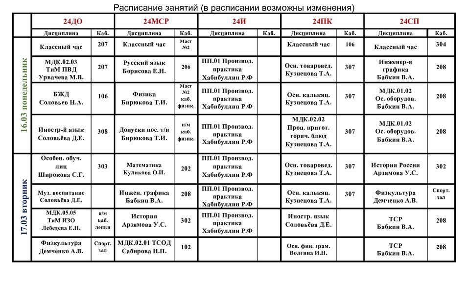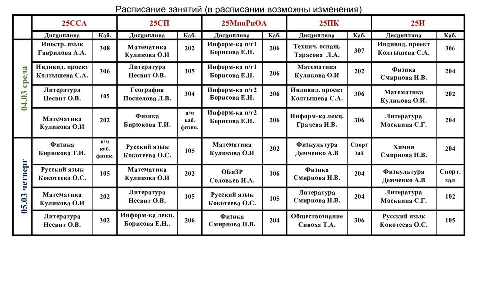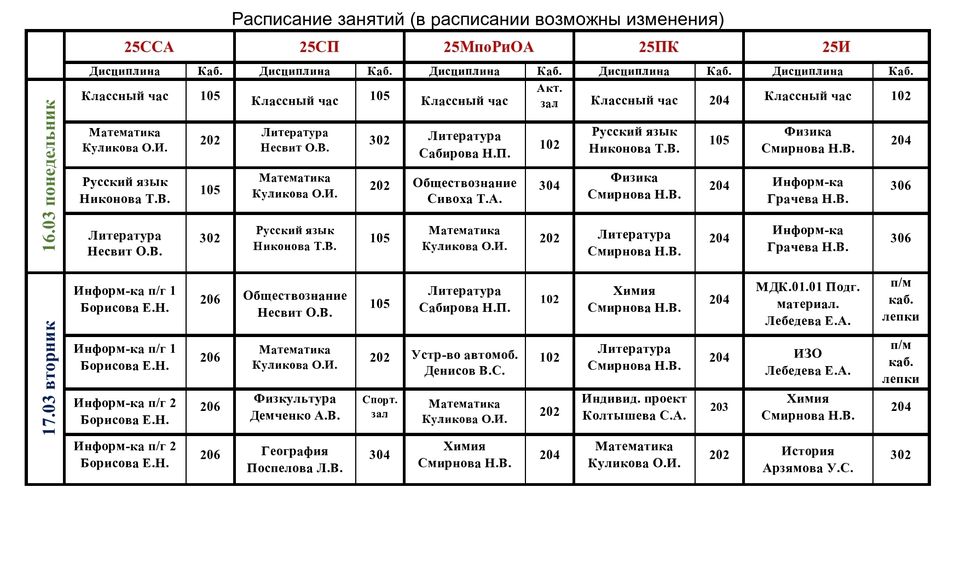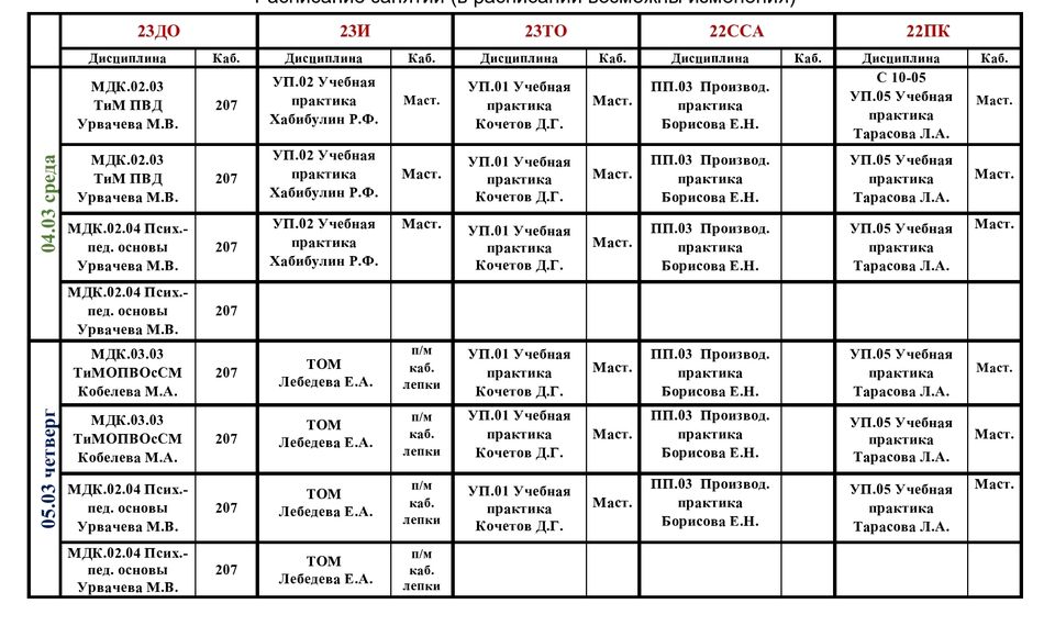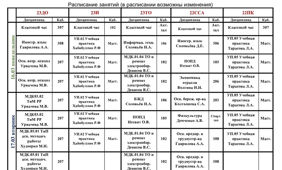 Расписание учебных занятий
